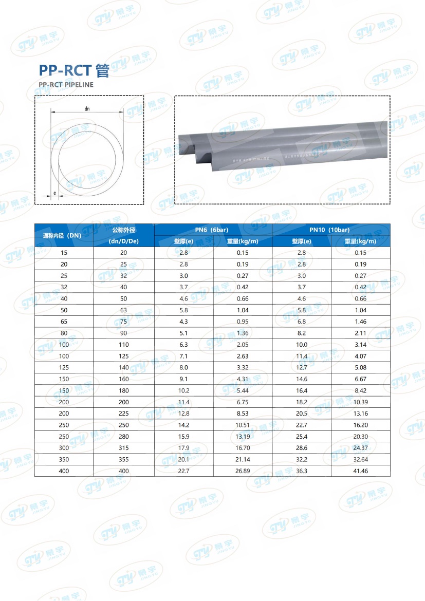 超容量:PP-RCT復(fù)合管道提高了單位厚度管道的抗沖擊強度,與相同壓力等級的PPR管道相比,其壁厚更薄,管道口徑可達D400MM.