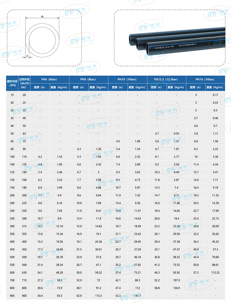 重量輕:PE100管道密度約為0.94~0.965G/CM3,與傳統(tǒng)鋼管或鑄鐵管相比重量更輕。